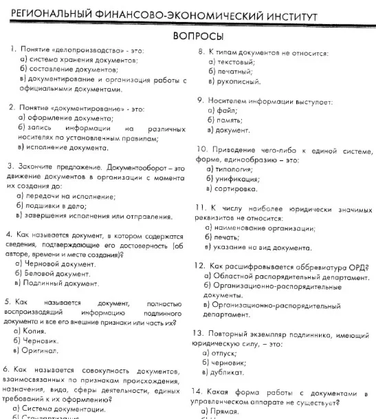 Итоговый зачет "ДОКУМЕНТАЦИОННОЕ ОБЕСПЕЧЕНИЕ УПРАВЛЕНИЯ". Региональный финансово - экономический институт.