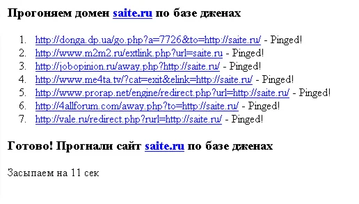 Скрипт обходит базу дженах (2253 урла), создает прямые ссылки (беки) на ваши сайты.