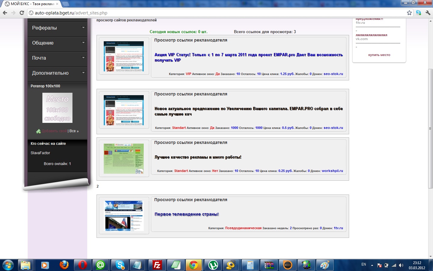 Полностью изменена страница просмотра сайтов. (со скриншотами рекламируемых сайтов)