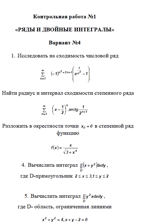 Купить Контрольная работа - Мат анализ 2 сем ТюмГУ 4 вариант
