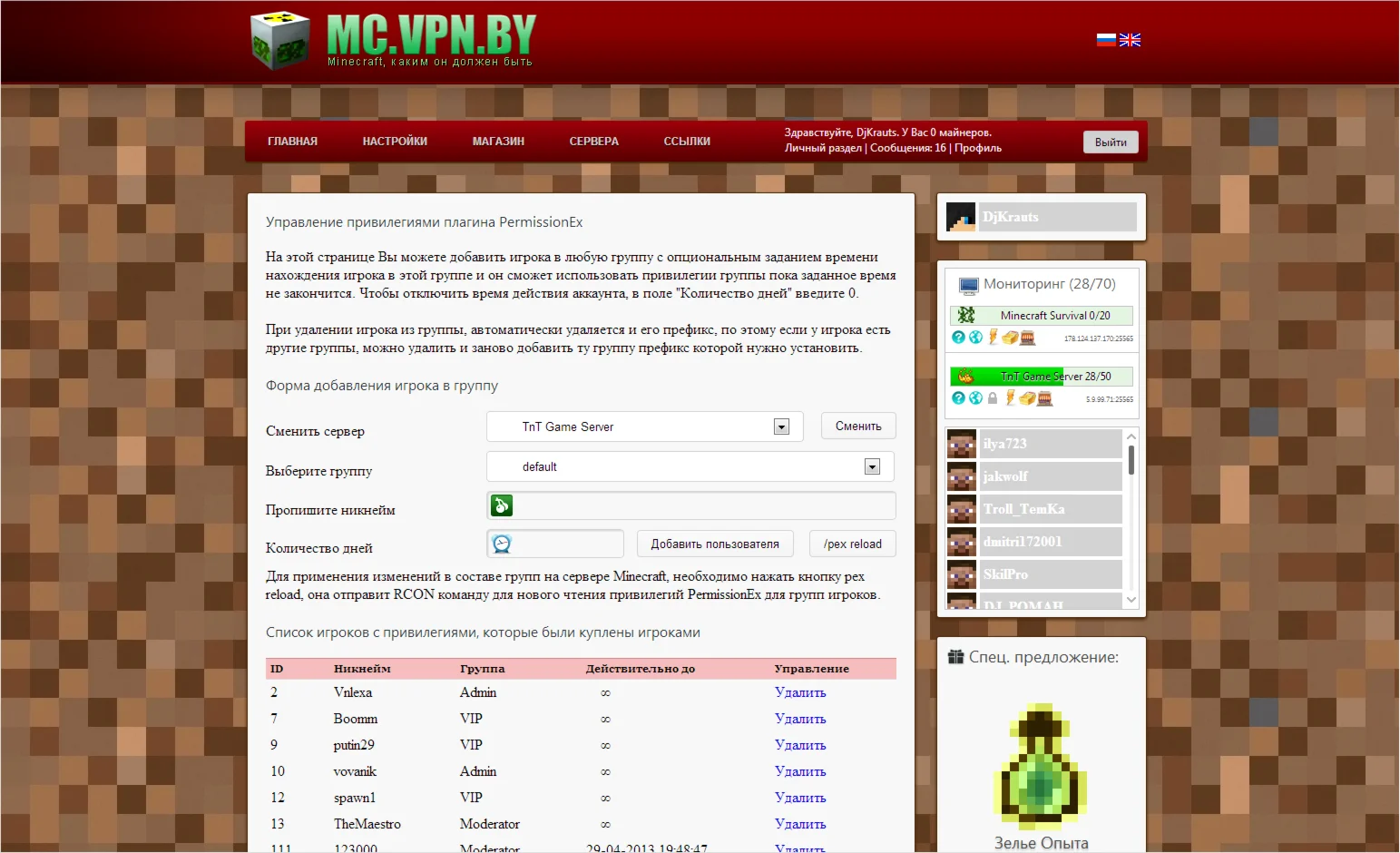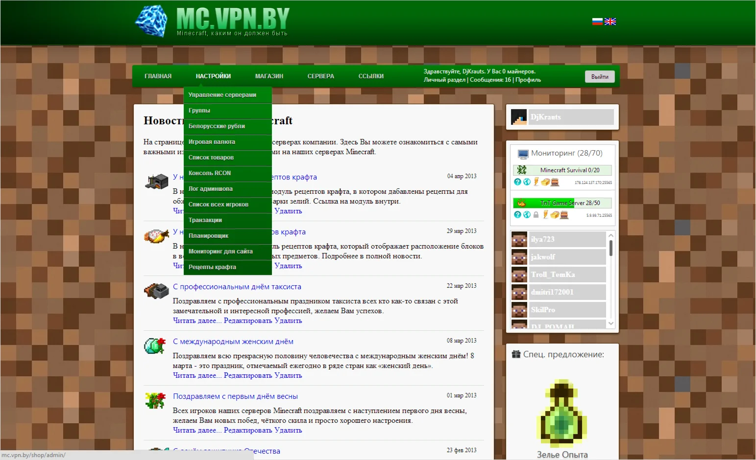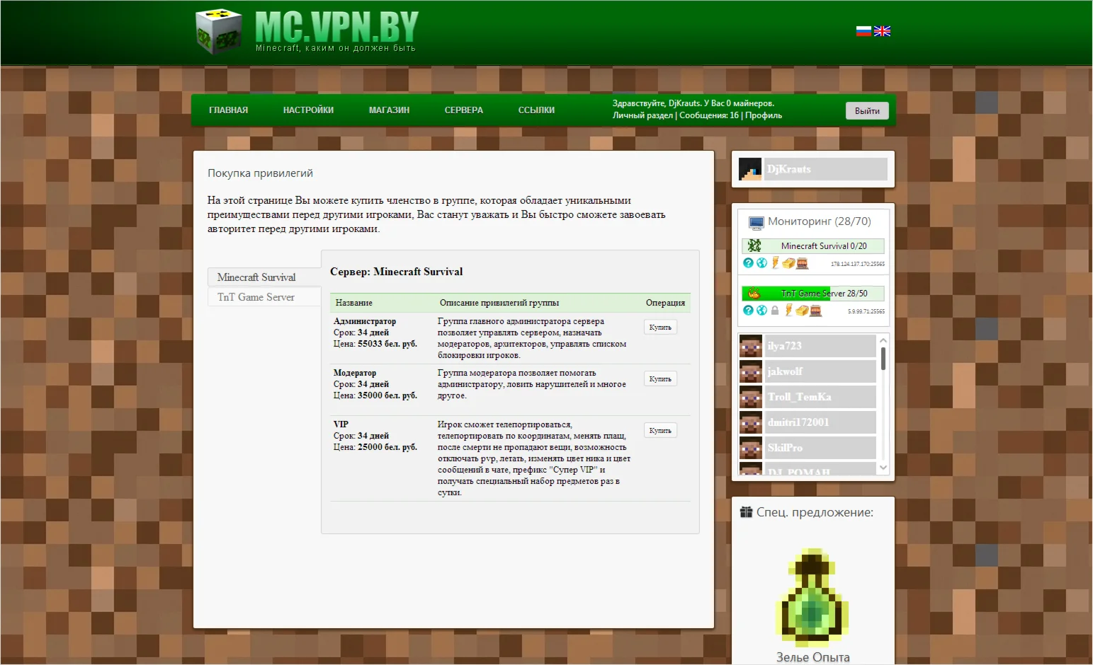 Магазин » CMS «Minecraft Shop» v0.5.8.5