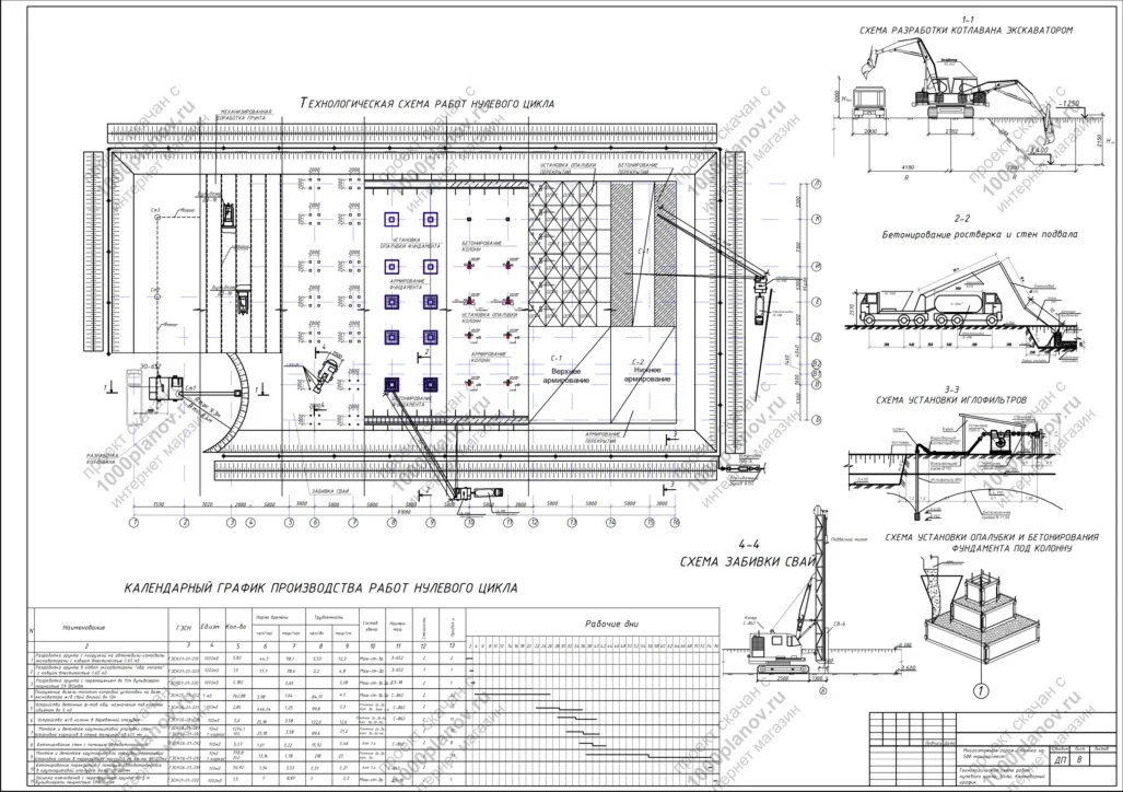 8. Технологическая схема работ нулевого цикла; Узлы; Календарный график.