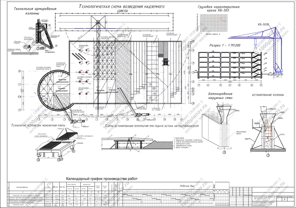 9. Технологическая схема возведения надземной части здания; Узлы; Календарный график.