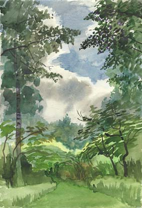 Сканированный рисунок акварелью, "Аллея".