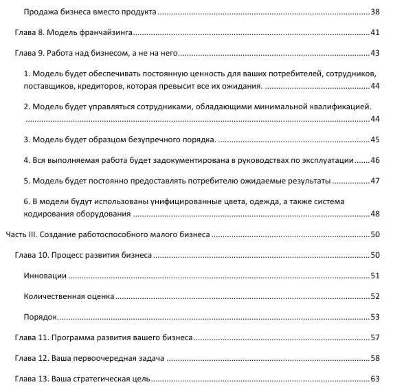 Книга Майкла Гербера, которого считают ведущим специалистом в области малого бизнеса, позволяет по-новому взглянуть на проблемы, связанные с организацией и развитием малых предприятий. Автор показывает, как общепринятые стереотипы могут воспрепятствовать успешному бизнесу, ведет своих читателей через главные этапы развития малого предприятия — от основания и становления до зрелости. Большой интерес представляет описание технологий франчайзинга для повышения эффективности и предсказуемости бизнеса. Книгу очень оживляют диалоги с молодой женщиной-предпринимателем, которые в понятной форме учат, как правильно организовывать, развивать и совершенствовать свое дело, не изменяя привычного образа жизни.