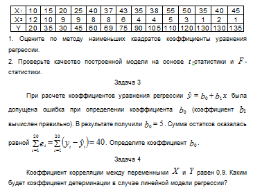 При расчете коэффициентов уравнения регрессии была допущена ошибка при определении коэффициента (коэффициент вычислен правильно). В результате получили . Сумма остатков оказалась равной . Определите коэффициент .