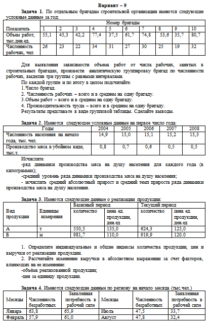 Задача 1. По отдельным бригадам строительной организации имеются следующие условные данные за год: