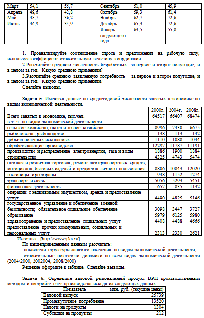 Задача 4. Имеются следующие данные по региону на начало месяца (тыс.чел.)