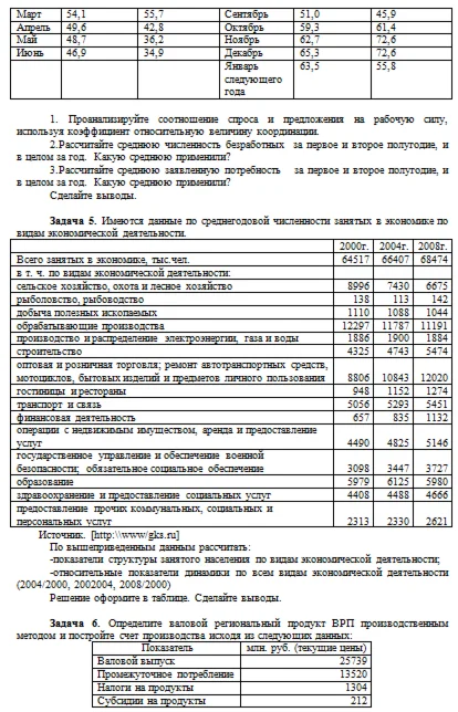 Задача 5. Имеются данные по среднегодовой численности занятых в экономике по видам экономической деятельности.