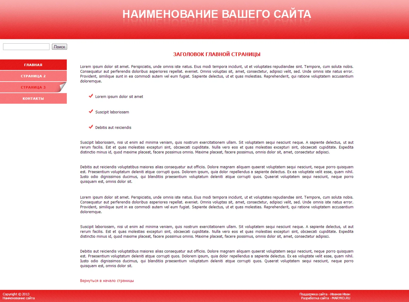 Магазин » Сайт-визитка с вертикальным меню (красный)
