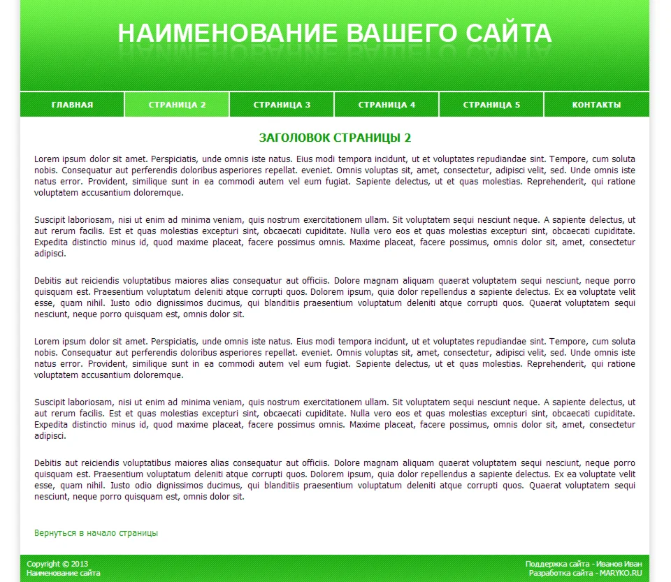 Магазин » Сайт-визитка с горизонтальным меню (зеленый)