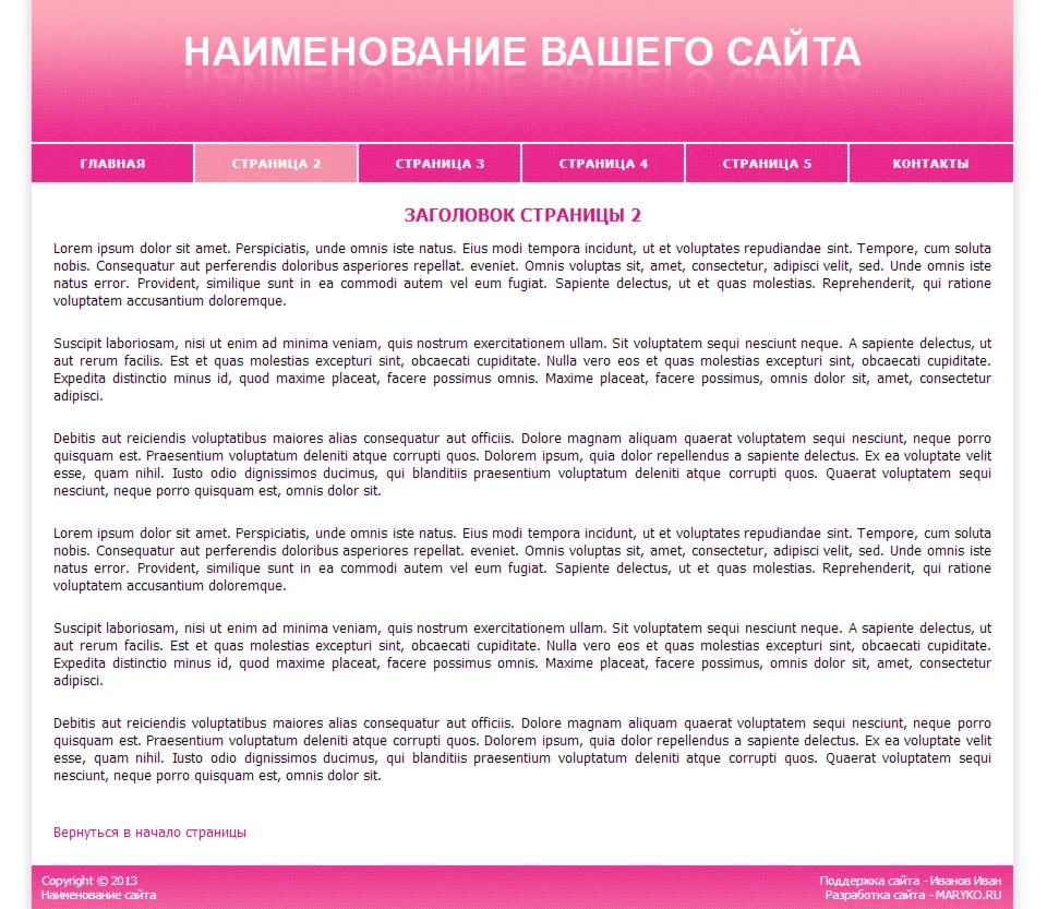 Магазин » Сайт-визитка с горизонтальным меню (розовый)