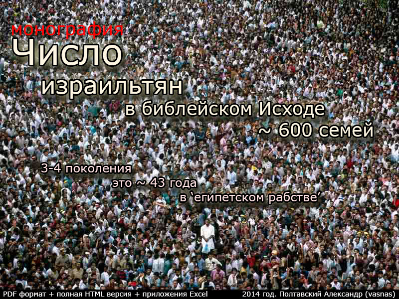 Монография "Число израильтян в библейском Исходе ~ 600 семей. 3-4 поколения это ~ 43 года в египетском рабстве.", Полтавский Александр