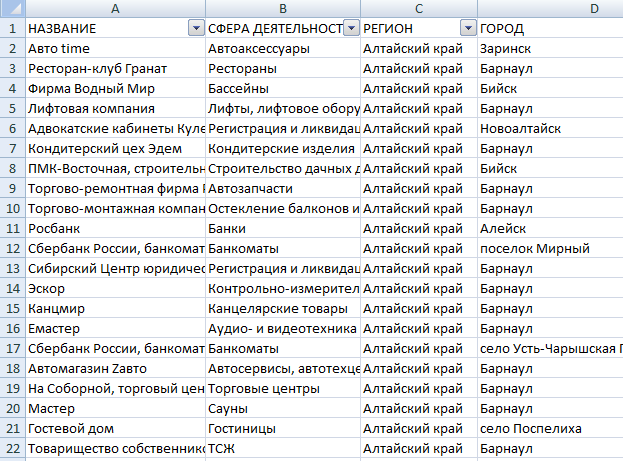 База контактов юридических лиц Амурской области, содержит 4916 записей (сфера деятельности, адрес, телефон, email, сайт), 1152 email адресов. Формат эксель (xls). Дата сбора: март 2014 года.