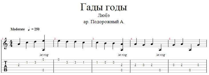 Магазин » Любэ - Гады годы аранжировка для одной гитары