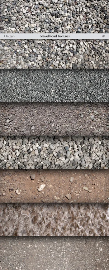 7 different seampless pattern realistic texture Gravel Road. Gravel Road Styles.