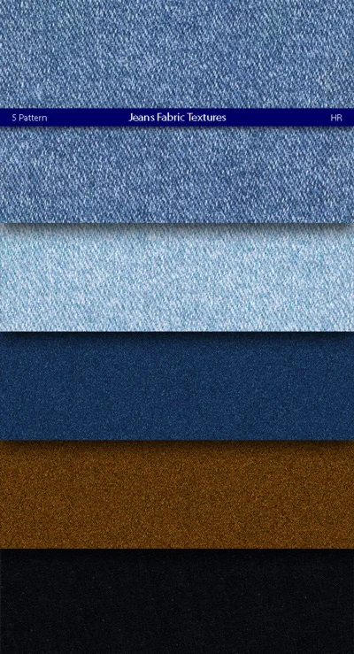 5 seampless pattern texture of Jeans Fabric. Jeans Style: Blue, Dark Blue, Light Blue, Brown, Black.