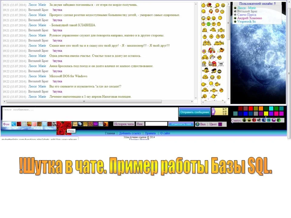 Проверить данную базу шуток можно на сайте: http://mybetterlinks.com/?chat=live_chat – в чате написать !шутка.