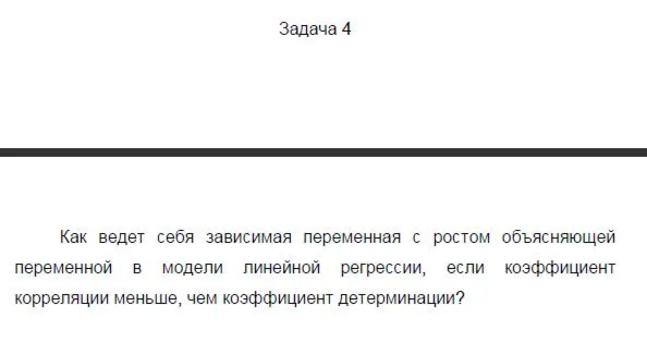 Как ведет себя зависимая переменная с ростом объясняющей переменной в модели линейной регрессии, если коэффициент корреляции меньше, чем коэффициент детерминации?
