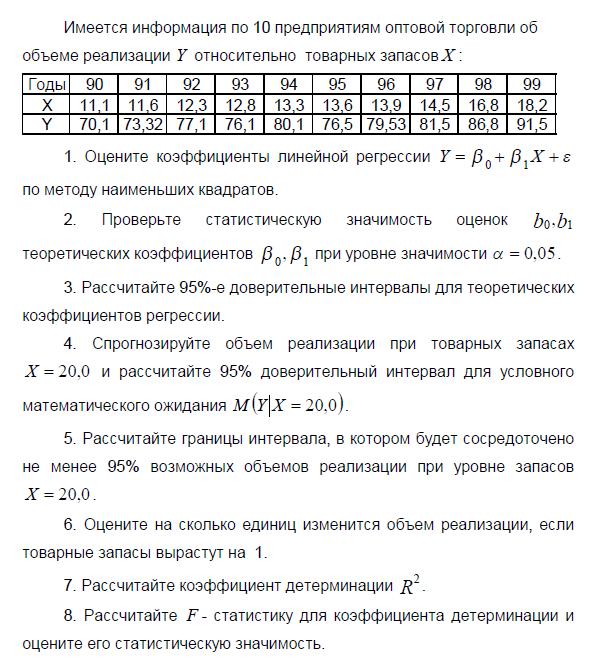 4. Спрогнозируйте объем реализации при товарных запасах и рассчитайте 95% доверительный интервал для условного математического ожидания .