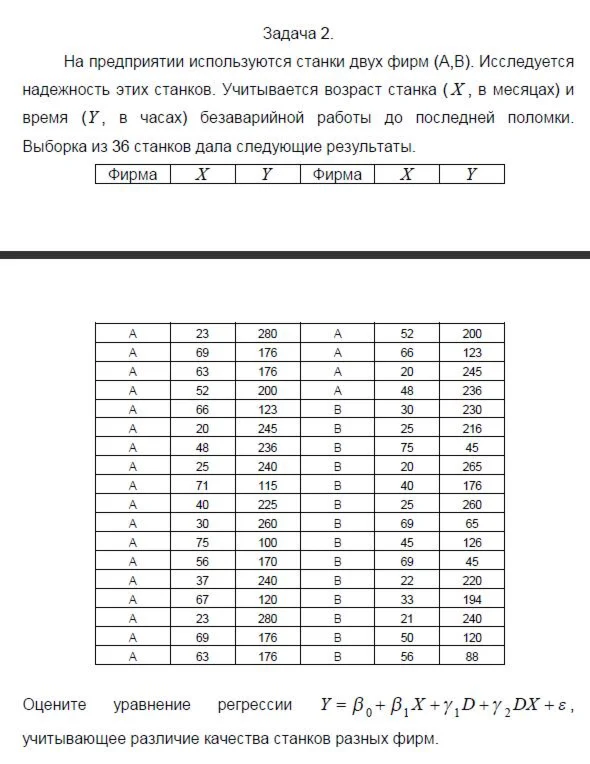 Оцените уравнение регрессии , учитывающее различие качества станков разных фирм.