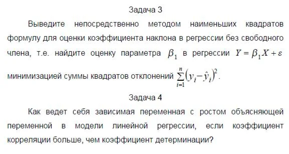 Выведите непосредственно методом наименьших квадратов формулу для оценки коэффициента наклона в регрессии без свободного члена, т.е. найдите оценку параметра в регрессии минимизацией суммы квадратов отклонений .