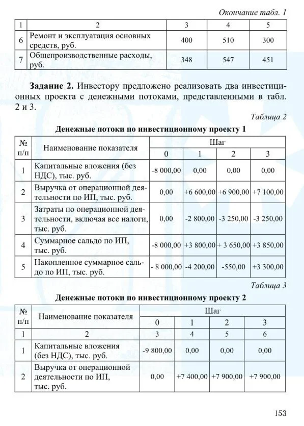 Задание № 2. Инвестору предложено реализовать два инвестиционных проекта с денежными потоками, представленными в табл. 2 и 3.