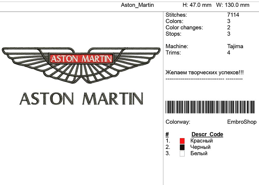 Машинная вышивка-логотип "Aston Martin"