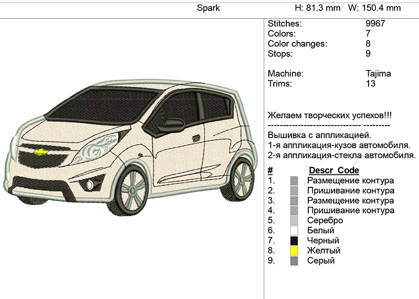 Компьютерная вышивка-автомобиль "Chevrolet Spark"