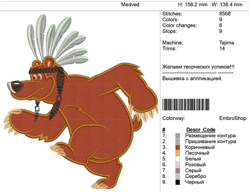 2-Дизайн детской вышивки "Маша и Медведь" с аппликацией.