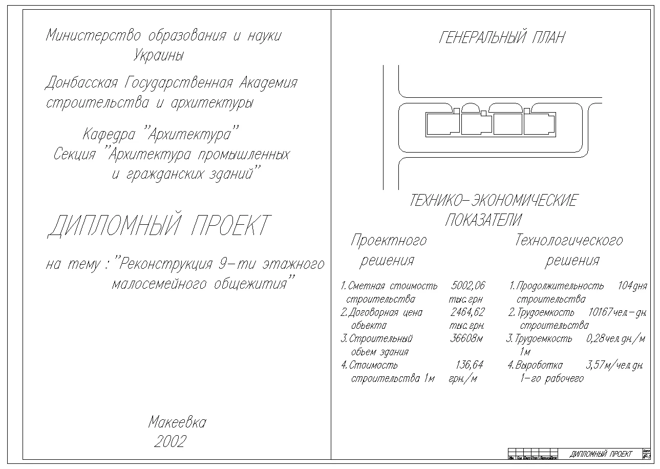Дипломный проект на тему: Реконструкция 9-ти этажного малосемейного общежития