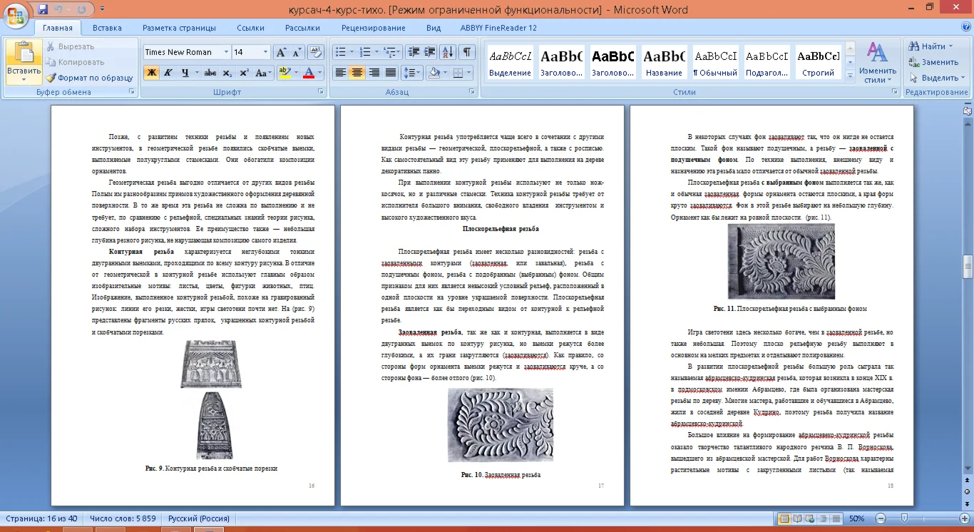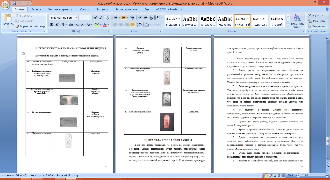 Глава II. Технология изготовления изделия с помощью плоскорельефной резьбы.....………………………….....................................25