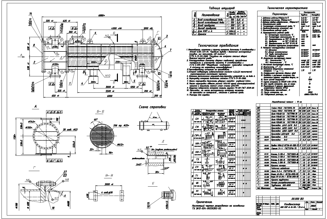 Магазин » Чертеж теплообменника 600 КНГ-6-10-М8 / 25-6-4