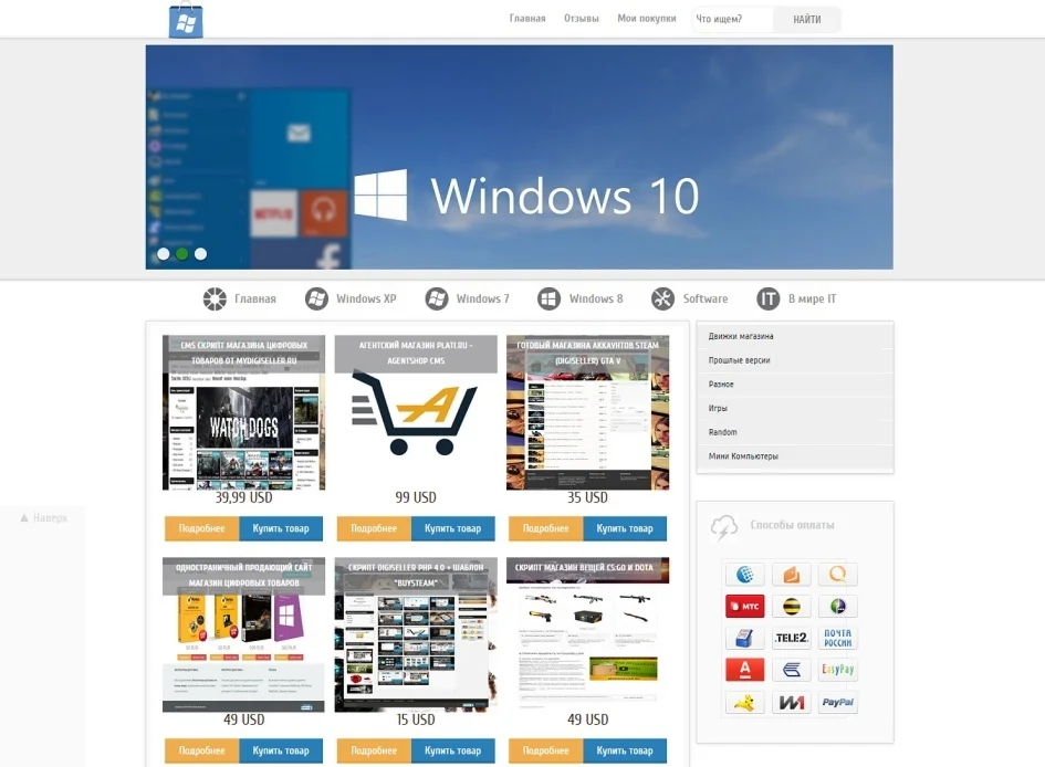 Магазин » Скрипт магазина цифровых товаров + шаблон Windows 10!