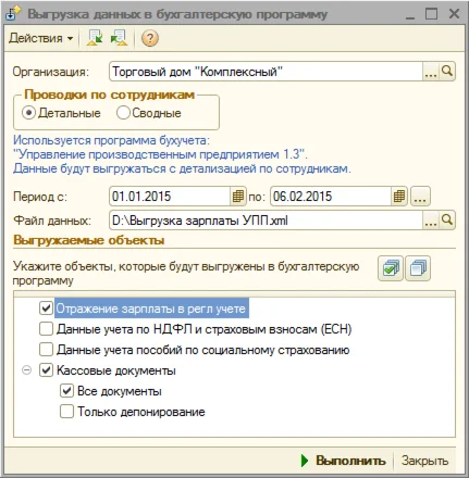 Магазин » Выгрузка данных из ЗУП 2.5 в УПП 1.3 (обработка)