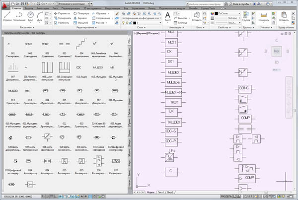 Элементы для удобства собраны в инструментальную палитру блоков AutoCAD 2010 .