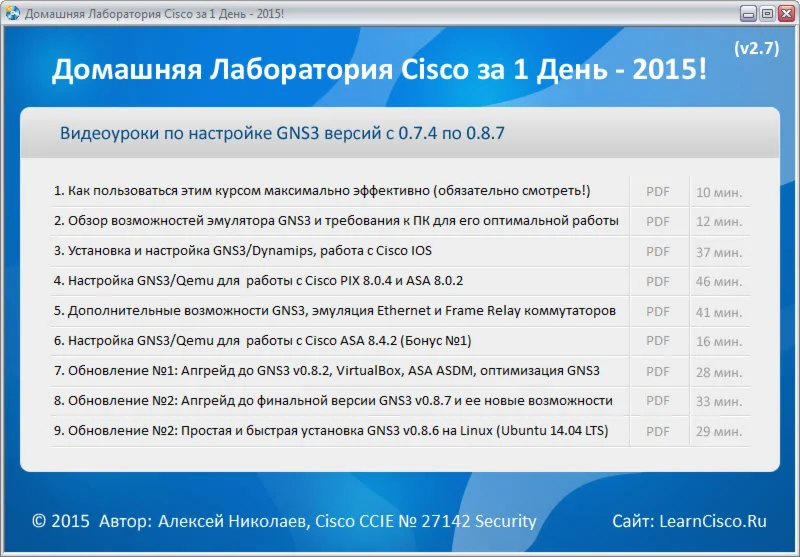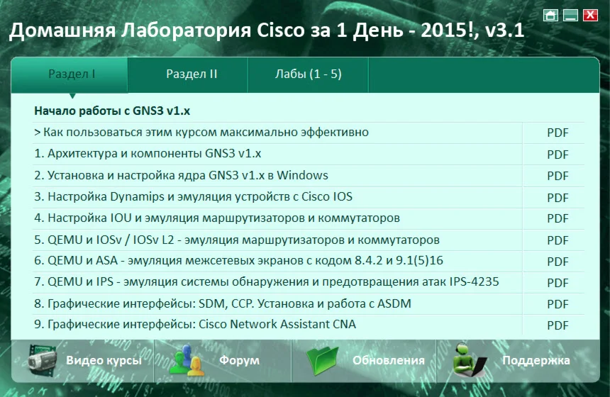 Уже через пару часов после скачивания и ознакомления с материалами, у вас будет полноценная лаборатория с маршрутизаторами, коммутаторами, межсетевыми экранами Cisco PIX/ASA.