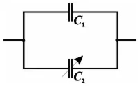 33. В каких пределах может изменяться электрическая емкость участка цепи, состоящей из конденсатора постоянной емкости C1=800 пФ и конденсатора переменной емкости C2=200÷1600 пФ (см. рисунок).