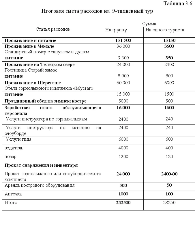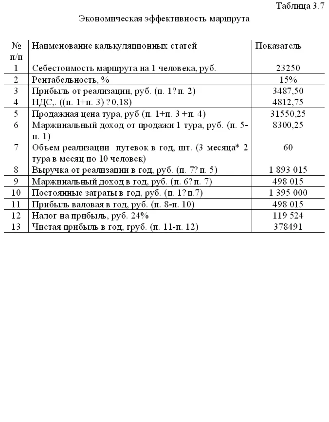 3.Разработать тур по Югу Западной Сибири и оценить его эффективность.