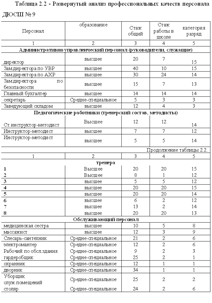 2.1. Диагностика эффективности управления персоналом МУДОД «Специализированная детско-юношеская спортивная школа олимпийского резерва имени ЗТР Промина В.Н.» 32