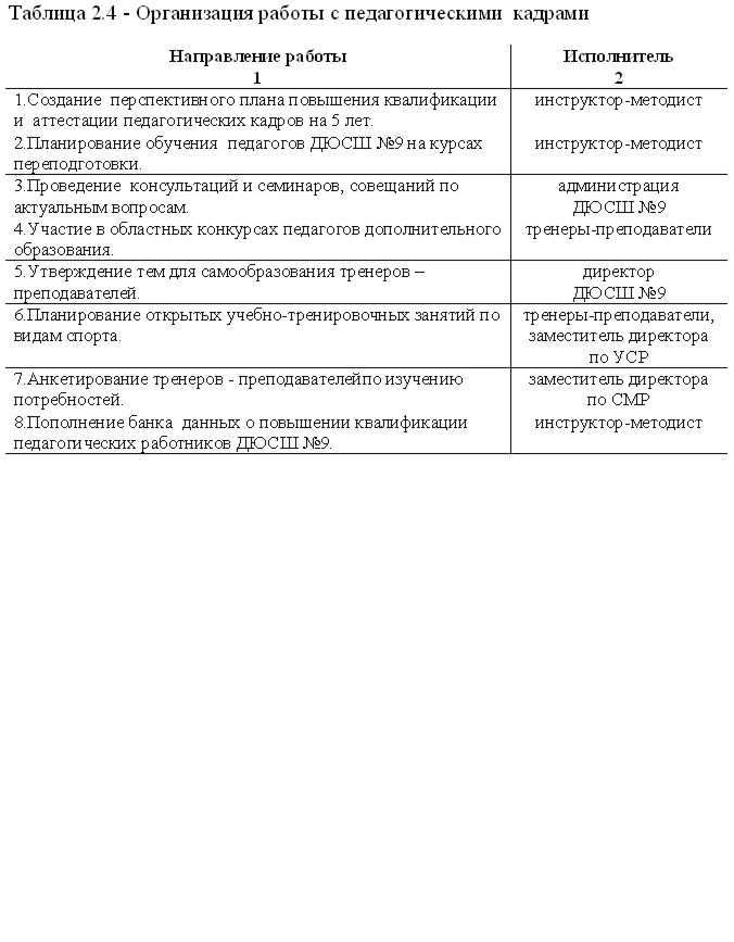 2.2. Разработка мероприятий по повышению эффективности управления персоналом МУДОД «Специализированная детско-юношеская спортивная школа олимпийского резерва имени ЗТР Промина В.Н.» 59