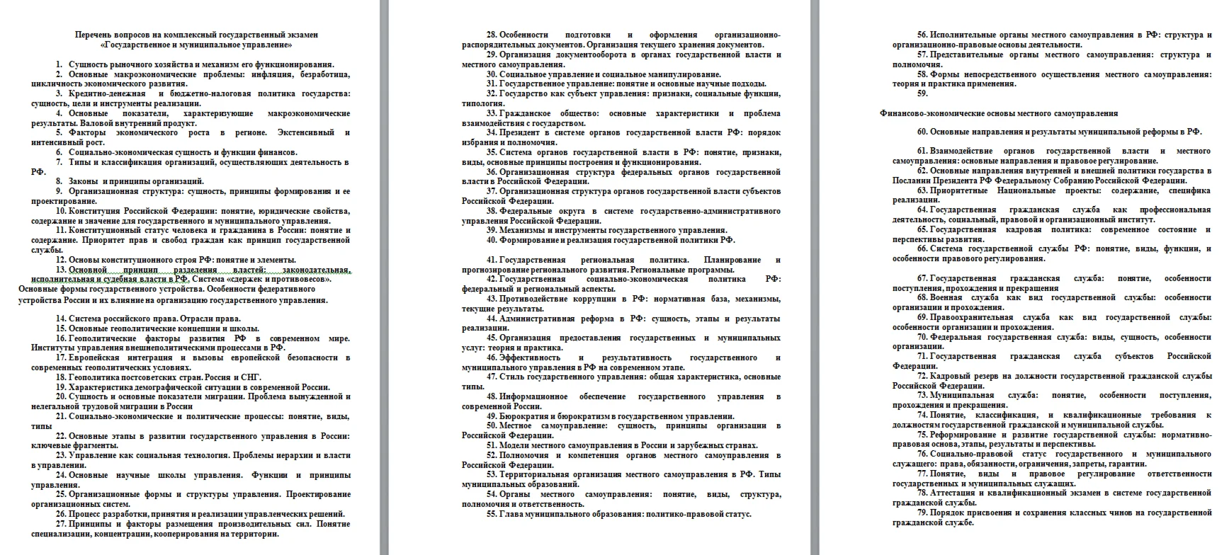 Перечень вопросов на комплексный государственный экзамен