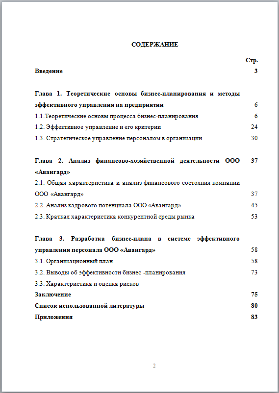 Глава 3. Разработка бизнес-плана в системе эффективного управления персонала ООО «Авангард» ...58