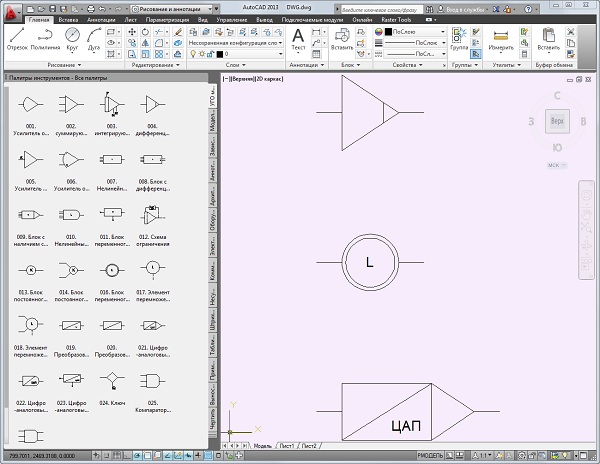Элементы для удобства собраны в инструментальную палитру блоков AutoCAD 2010 .