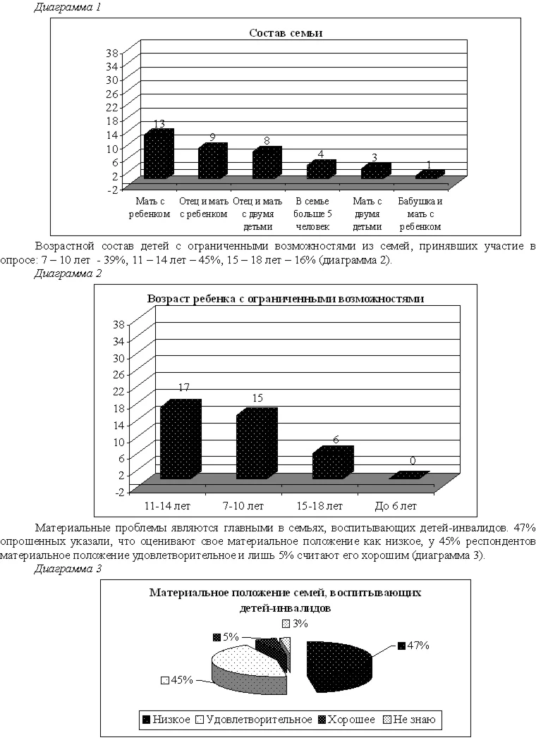 С целью изучения социального положения семей с детьми-инвалидами в апреле – июле 2010 года был проведен социологический опрос.