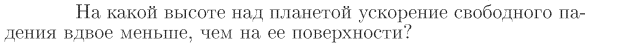 На какой высоте над планетой ускорение свободного падения вдвое меньше, чем на ее поверхности?
