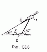 Однородный стержень весом Р=24 Н прикреплен шарнирно к невесомым ползунам 1 и 2 (рис. С3.0 — С3.9, табл. СЗ). Коэффициенты трения ползунов о направляющие, вдоль которых они могут скользить, равны соответственно f1 и f2. К ползунам приложены силы Q1 и Q2, показанные на рисунках. Механизм расположен в вертикальной плоскости.