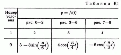 Зависимость x = f1(t) указана непосредственно на рисунках, а зависимость y = f2 дана в табл. K1 (для рис. 0—2 в столбце 2, для рис. 3—6 в столбце 3, для рис. 7—9 в стол