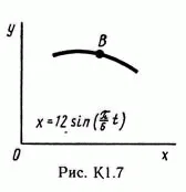 Точка В движется в плоскости xy (рис. К1.0 — К 1.9, табл. К1; траектория точки на рисунках показана условно). Закон движения точки задается уравнениями: x = f1(t), y = f2, где x и y выражены в сантиметрах, t — в секундах.