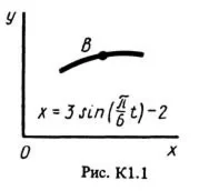 Точка B движется в плоскости xy (рис. К1.0-К1.9, табл. К1; траектория точки на рисунках показана условно). Закон движения точки задан уравнениями: x = f1(t), y = f2(t), где x и y выражены в сантиметрах, t – в секундах.